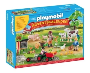 I adventskalendern Livet på Farmen och På bondgården finns en hel familj med bönder och en traktor som hjälper till med jordbruket. På bondgården finns många olika djur som hönor, grisar, kaniner, grisar och kossor. Kalendern består av 76 bitar.